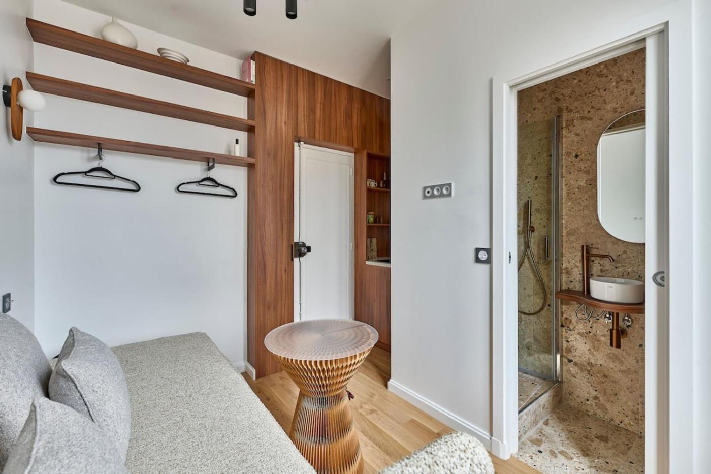 Appartement 1 Chambre. Offering free toiletries, this studio includes a private bathroom with a walk-in shower and a hairdryer. The well-fitted kitchen features a refrigerator, kitchenware, a microwave and an electric kettle. The unit comes with a seating area, a dining area, a dressing room and also has city views. The unit offers 1 bed.