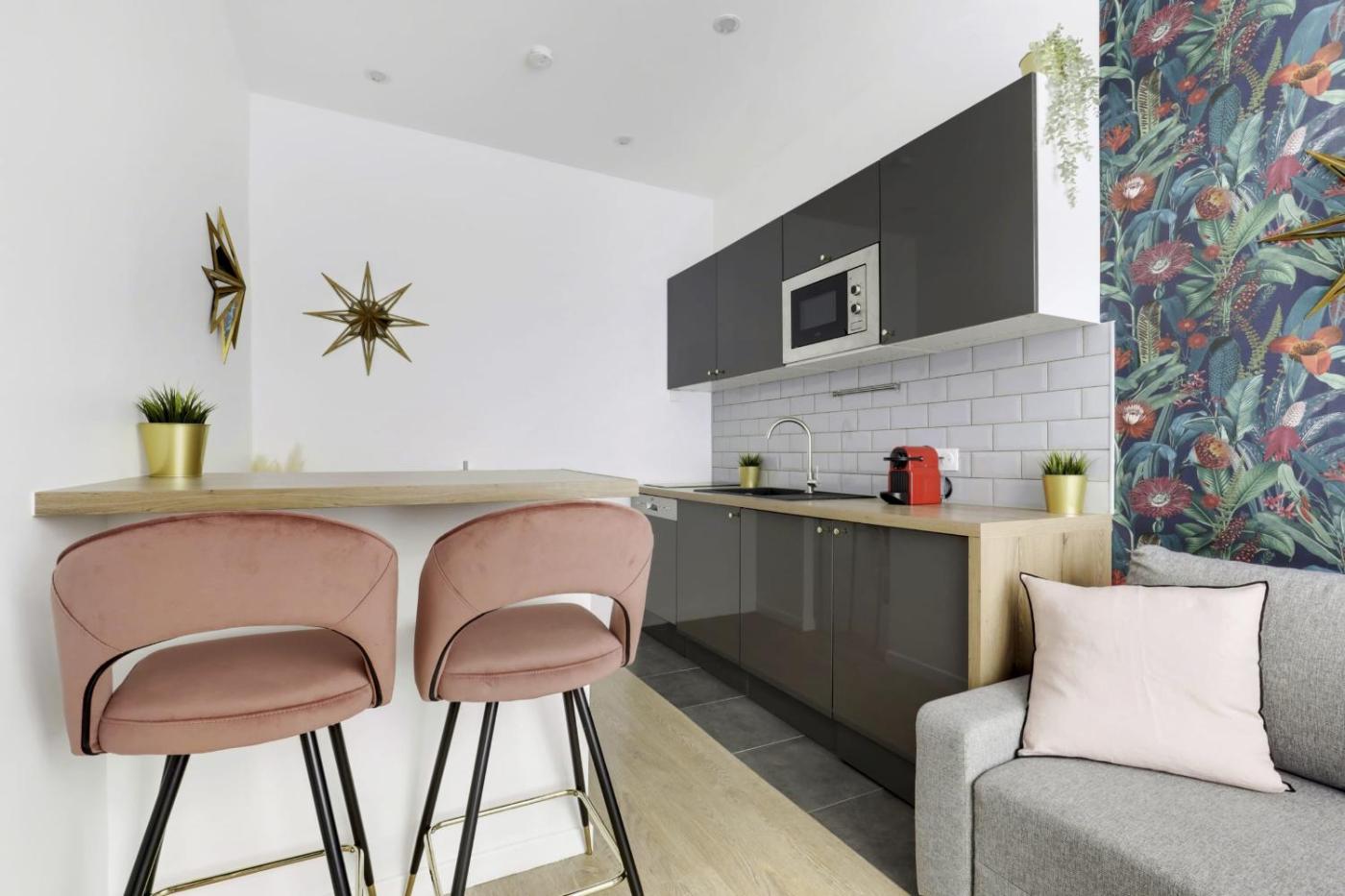 Studio. Meals can be prepared in the kitchen, which is equipped with a refrigerator, a dishwasher, kitchenware and a microwave. The studio provides a washing machine, a coffee machine, as well as a private bathroom featuring a shower and a hairdryer. The unit offers 1 bed.