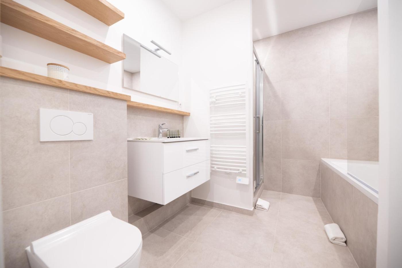 Appartement 2 Chambres Deluxe. This spacious apartment comprises 1 living room, 2 separate bedrooms and 1 bathroom with a bath and free toiletries. Meals can be prepared in the kitchen, which comes with a stovetop, a refrigerator, a dishwasher and kitchenware. The apartment provides a flat-screen TV, a private entrance, soundproof walls, a tea and coffee maker as well as ancourtyard view. The unit offers 3 beds.