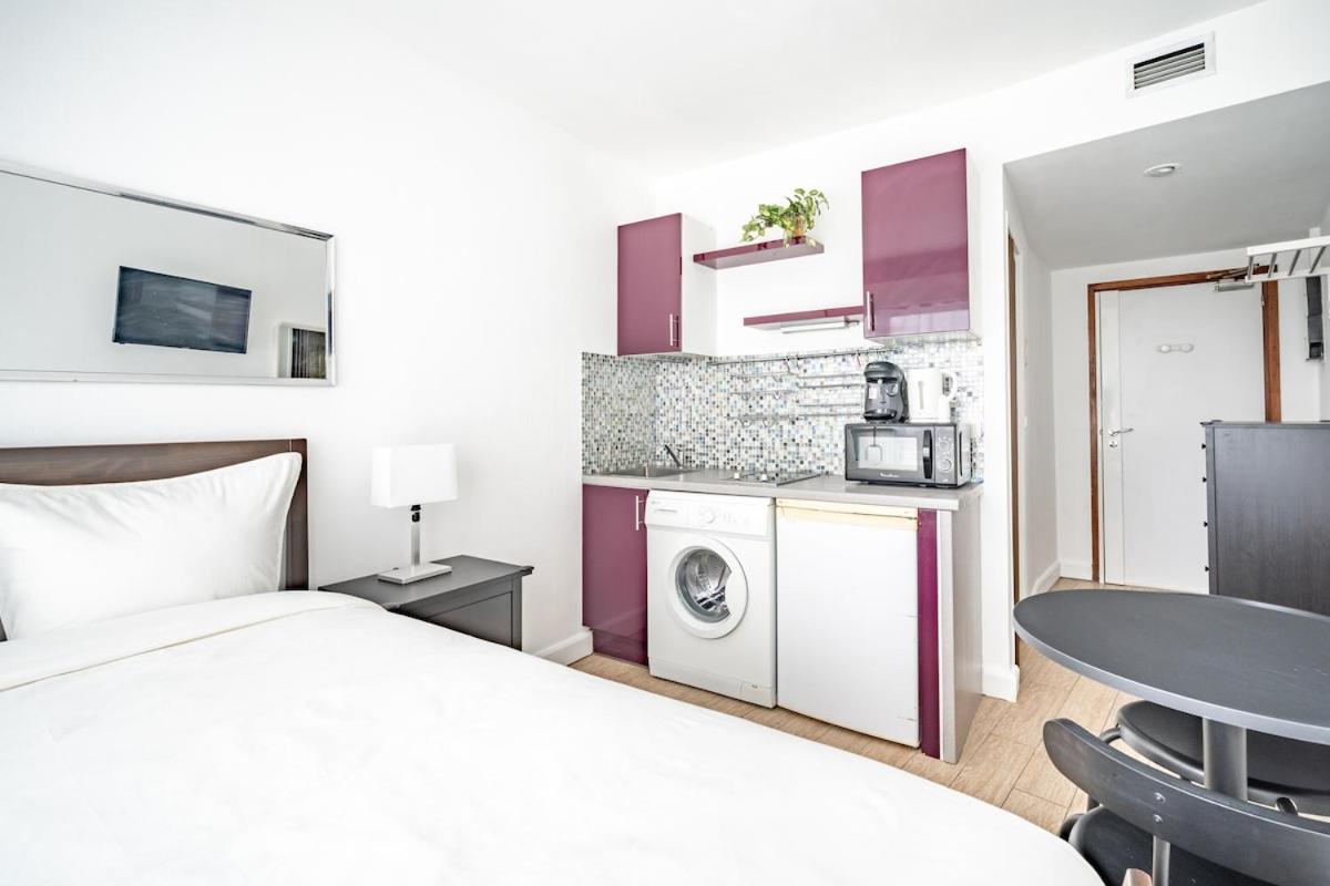 Studio Supérieur. This studio features a private bathroom and a dining area. The kitchen is equipped with a stovetop, a refrigerator and a microwave. The studio provides a flat-screen TV with satellite channels, a washing machine, soundproof walls, a tea and coffee maker as well as city views. The unit offers 1 bed.