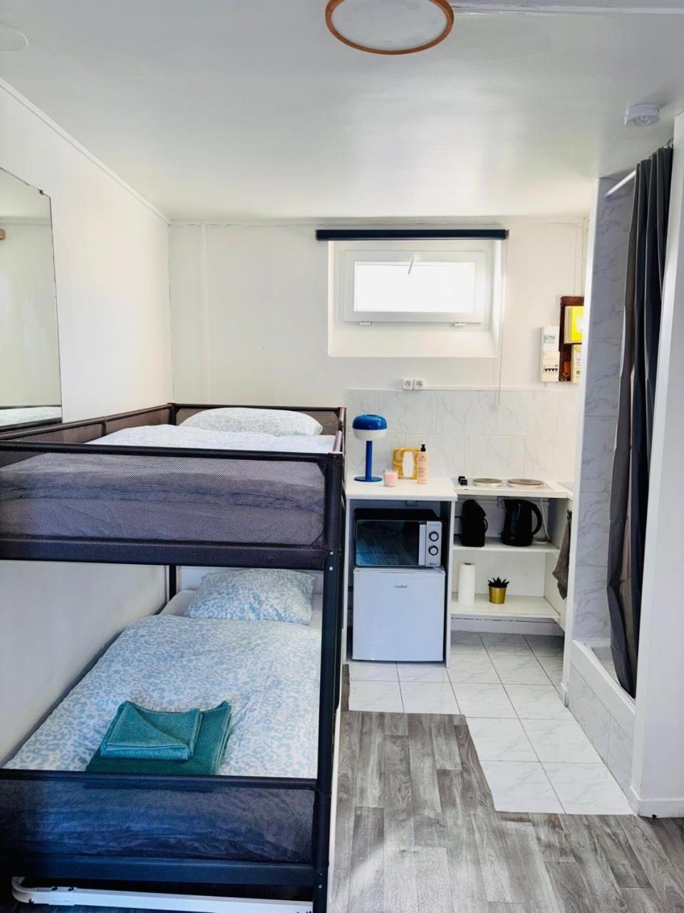 Chambre Double avec Salle de Bains Privative. Providing free toiletries, this double room includes a private bathroom with a shower and a hairdryer. In the kitchenette, guests will find a stovetop, a refrigerator, kitchenware and a microwave. The double room is equipped with a private entrance, a coffee machine, a dining area as well as a wardrobe. The unit offers 3 beds.