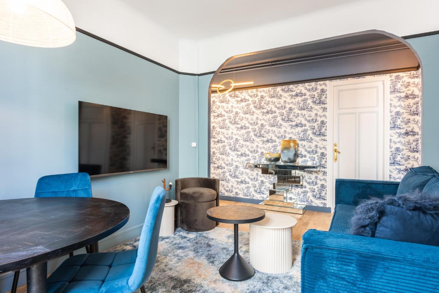 Appartement 1 Chambre. This apartment includes 1 living room, 1 separate bedroom and 1 bathroom with a shower and a hairdryer. In the fully equipped kitchen, guests will find a stovetop, a refrigerator, a dishwasher and kitchenware. The apartment has parquet floors, a seating area with a flat-screen TV with streaming services, a washing machine, a coffee machine, as well as a dining area. The unit has 2 beds.