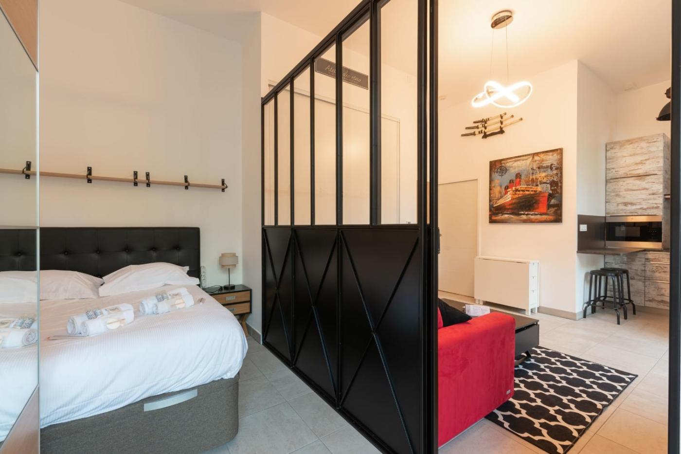 Cet appartement se compose de 1 chambre, dun salon, dune cuisine entièrement équipée avec un réfrigérateur et une machine à café, ainsi que de 1 salle de bains avec une douche. Des serviettes et du linge de lit sont mis à votre disposition.