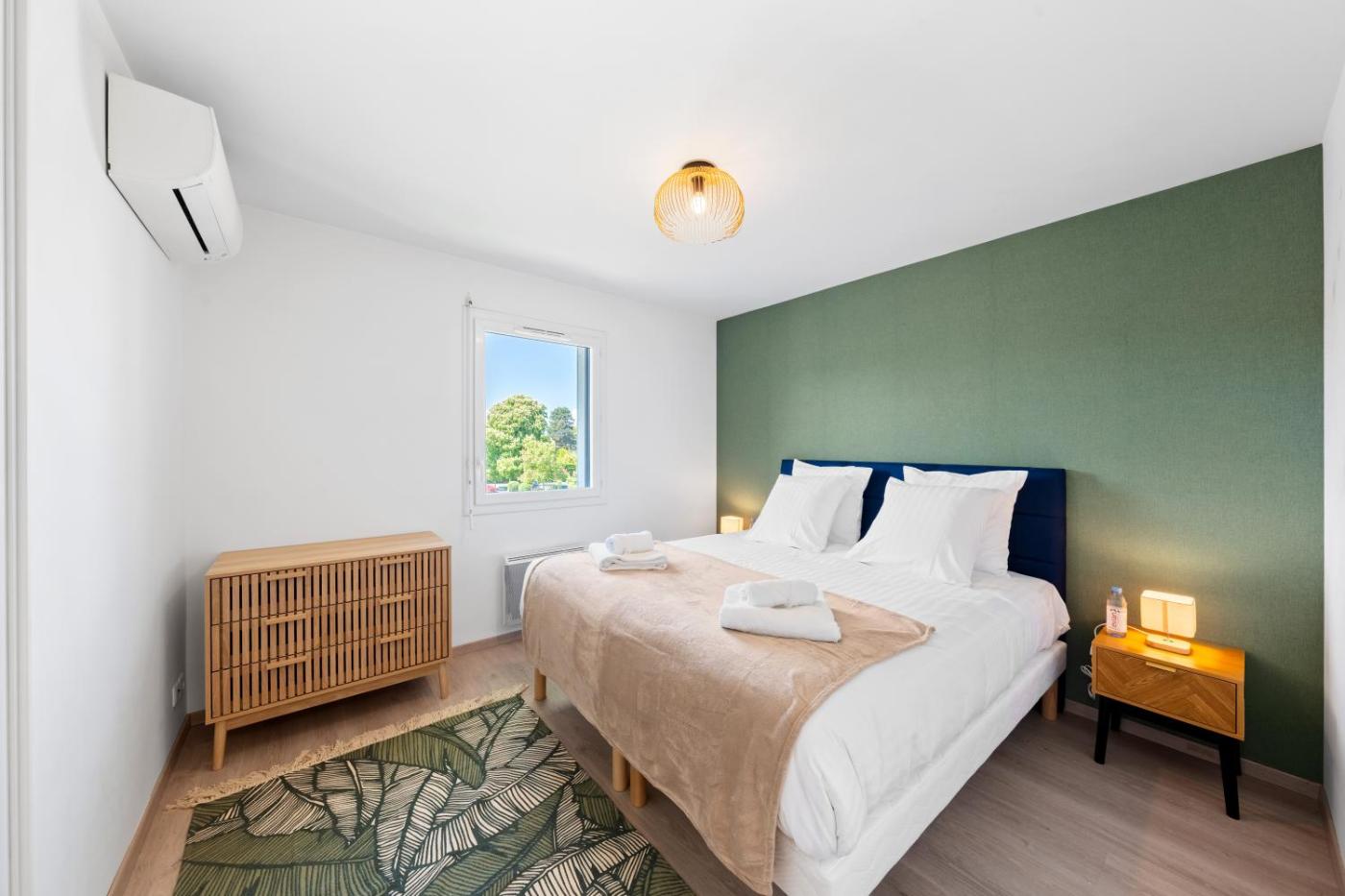 Appartement - Vue sur Lac. This spacious apartment comes with 3 bedrooms, a kitchen and 2 bathrooms with a bath and a hairdryer. Meals can be prepared in the kitchen, which features a stovetop, a refrigerator, a dishwasher and kitchenware. The apartment features air conditioning, a washing machine, a tea and coffee maker, tumble dryer and a TV. The unit has 5 beds.