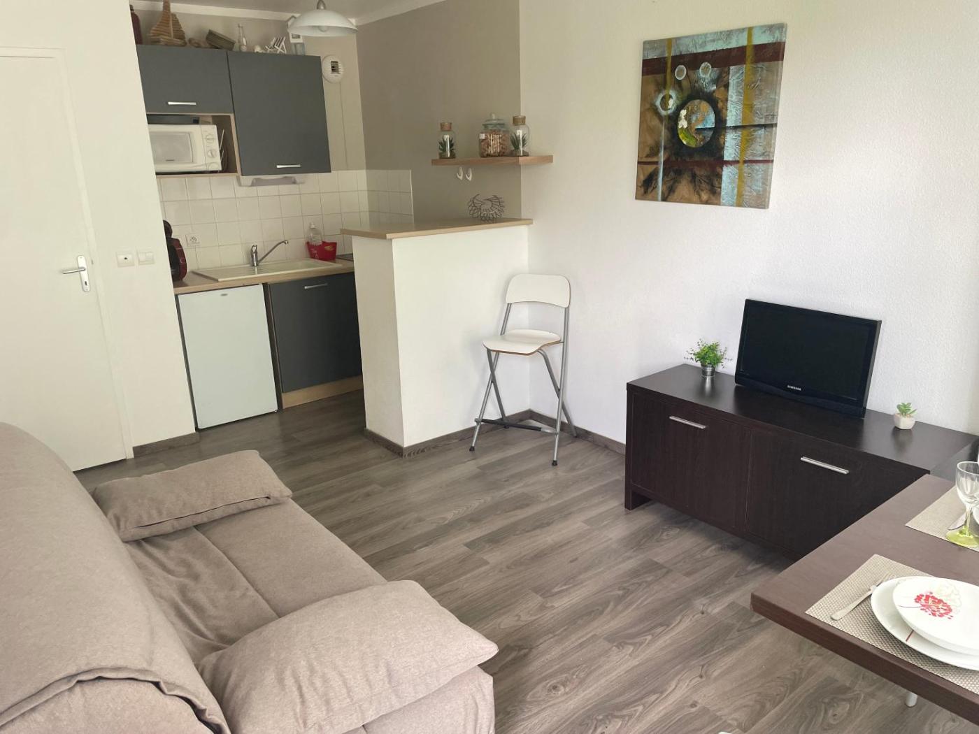 Appartement 1 Chambre. The private pool is the standout feature of this apartment. This apartment comes with 1 living room, 1 separate bedroom and 1 bathroom with a bath and a hairdryer. The well-fitted kitchen has a stovetop, a refrigerator, kitchenware and a microwave. Boasting a terrace with garden views, this apartment also features a tea and coffee maker and a flat-screen TV. The unit has 2 beds.