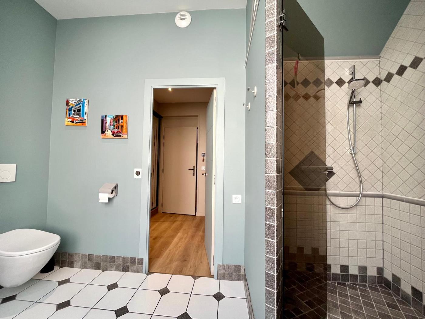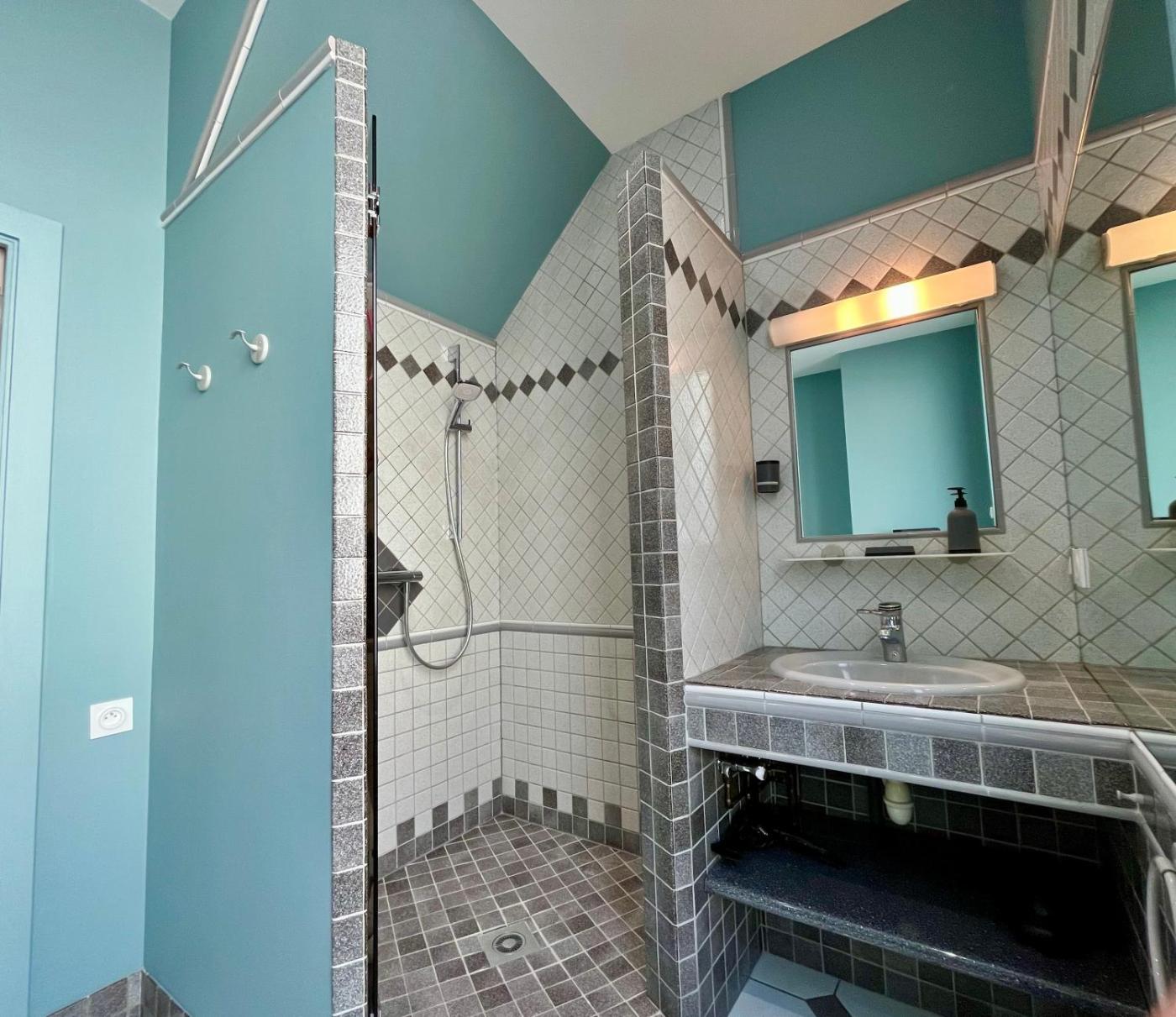Chambre Double avec Salle de Bains Privative Extérieure. The double room features a private entrance, a dining area, as well as a private bathroom boasting a shower and a hairdryer. The double room provides a wardrobe, an electric kettle, parquet floors, heating and a flat-screen TV. The unit has 3 beds.