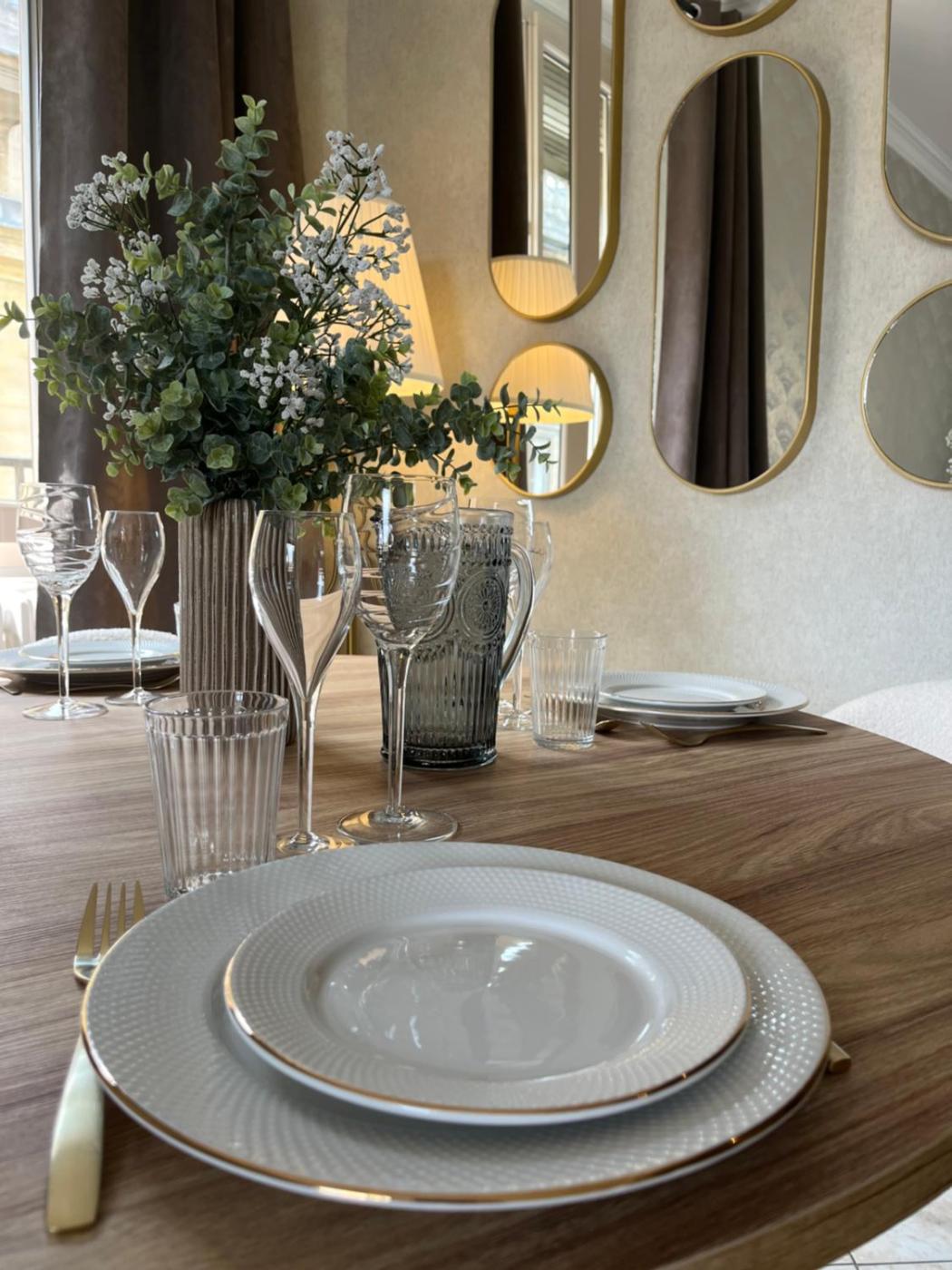 Les assiettes, les couverts, les verres et les autres éléments de la vaisselle sont désinfectés