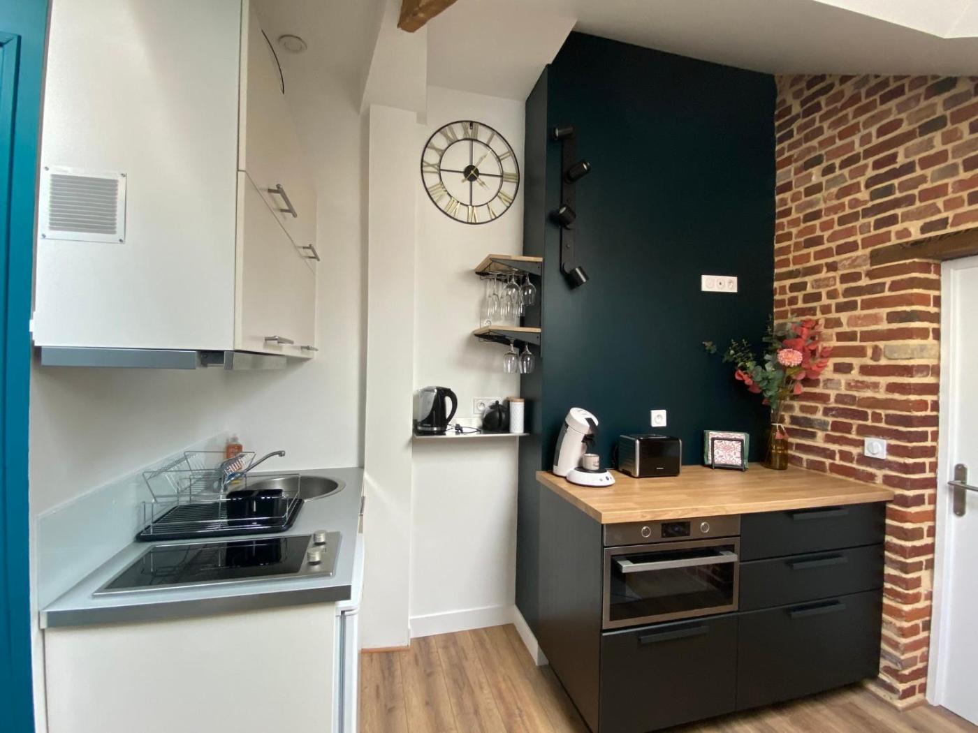 Appartement 1 Chambre. Featuring a private entrance, this apartment comprises 1 living room, 1 separate bedroom and 1 bathroom with a shower and a hairdryer. Guests can make meals in the kitchen that comes with a stovetop, a refrigerator, kitchenware and a microwave. The apartment features parquet floors, a seating area with a flat-screen TV, a tea and coffee maker, a dining area, as well as a wardrobe. The unit offers 1 bed.