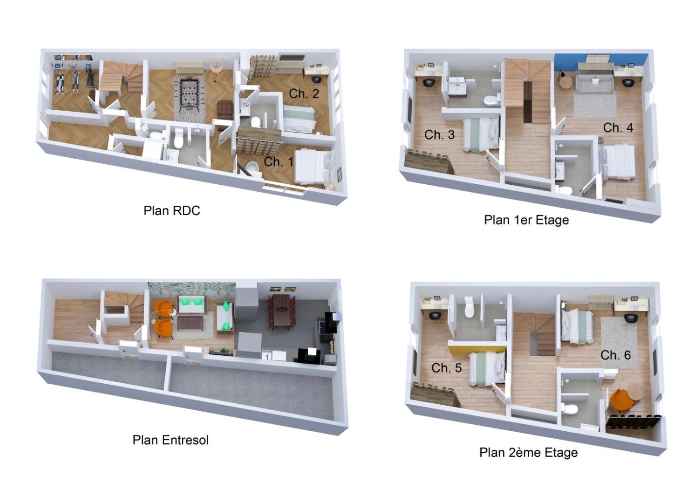Maison 6 Chambres. This spacious holiday home features 1 living room, 6 separate bedrooms and 6 bathrooms with a walk-in shower and a hairdryer. In the kitchen, guests will find a stovetop, a refrigerator, a dishwasher and kitchenware. The holiday home features a washing machine, a coffee machine, a seating area, a flat-screen TV with streaming services, as well as city views. The unit has 6 beds.