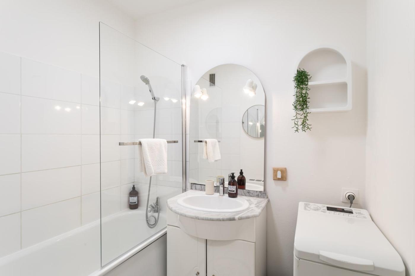 Appartement 1 Chambre. This apartment consists of 1 living room, 1 separate bedroom and 1 bathroom with a bath and free toiletries. The well-equipped kitchen features a refrigerator, kitchenware, an oven and a microwave. The apartment provides a washing machine, a tea and coffee maker, a wardrobe, a sofa, as well as a TV. The unit offers 2 beds.