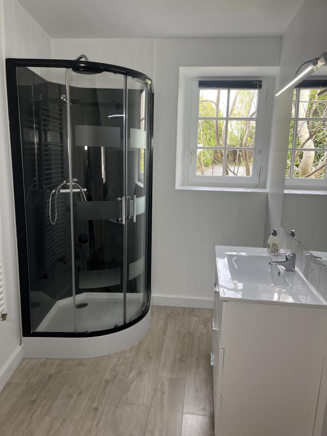 Villa - Vue sur Jardin. Featuring a private entrance, this villa consists of 1 living room, 1 separate bedroom and 1 bathroom with a shower and a hairdryer. The well-equipped kitchen features a stovetop, a refrigerator, a dishwasher and kitchenware. The villa has parquet floors, a seating area with a flat-screen TV, soundproof walls, a tea and coffee maker as well as garden views. The unit offers 3 beds.