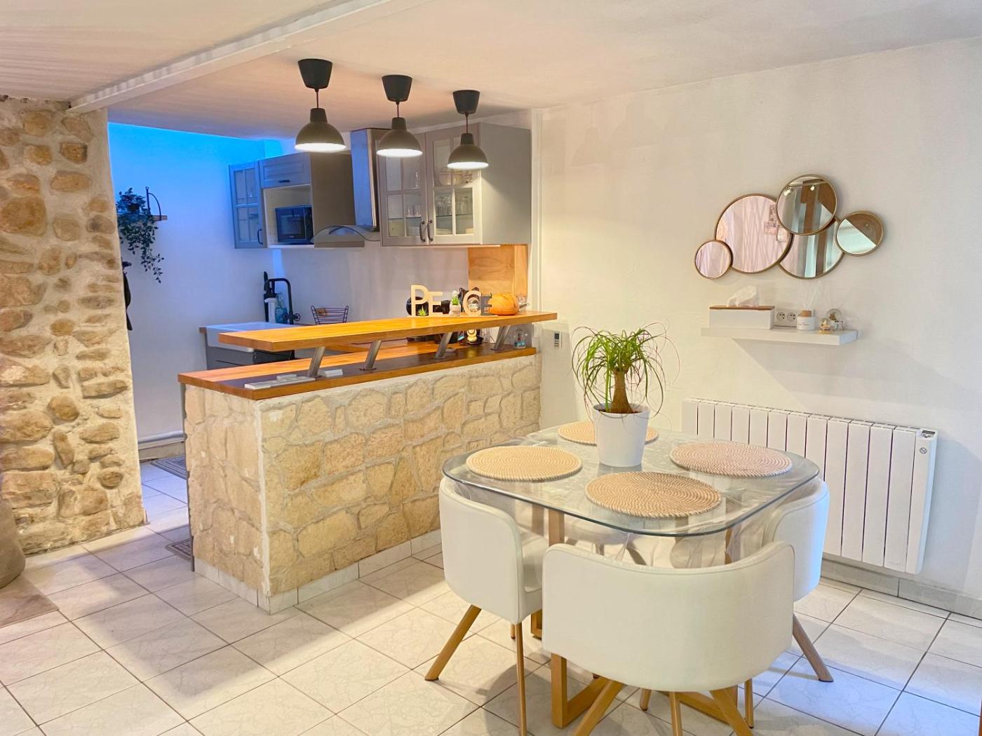 Maison 1 Chambre. Boasting a private entrance, this holiday home features 1 living room, 1 separate bedroom and 1 bathroom with a shower and a hairdryer. In the kitchen, guests will find a stovetop, a refrigerator, a dishwasher and kitchenware. Featuring a terrace, this holiday home also features a washing machine, soundproof walls and a flat-screen TV with streaming services. The unit has 2 beds.