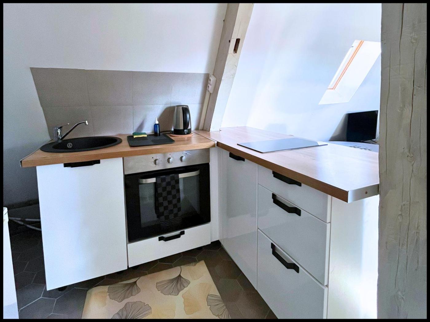 Studio. The studio features a private bathroom fitted with a bath and a hairdryer. Meals can be prepared in the well-fitted kitchen, which features a stovetop, a refrigerator, kitchenware and an oven. The studio has parquet floors, a seating area with a flat-screen TV with streaming services, a tea and coffee maker, a dining area, as well as a sofa. The unit has 1 bed.