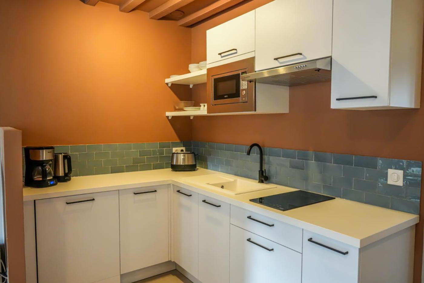 Appartement Deluxe. Featuring a private entrance, this apartment consists of 1 living room, 1 separate bedroom and 1 bathroom with a walk-in shower and a bath. In the well-fitted kitchen, guests will find a stovetop, a refrigerator, a dishwasher and kitchenware. The apartment features parquet floors, a seating area with a flat-screen TV with streaming services, a washing machine, a tea and coffee maker, as well as a dining area. The unit offers 2 beds.