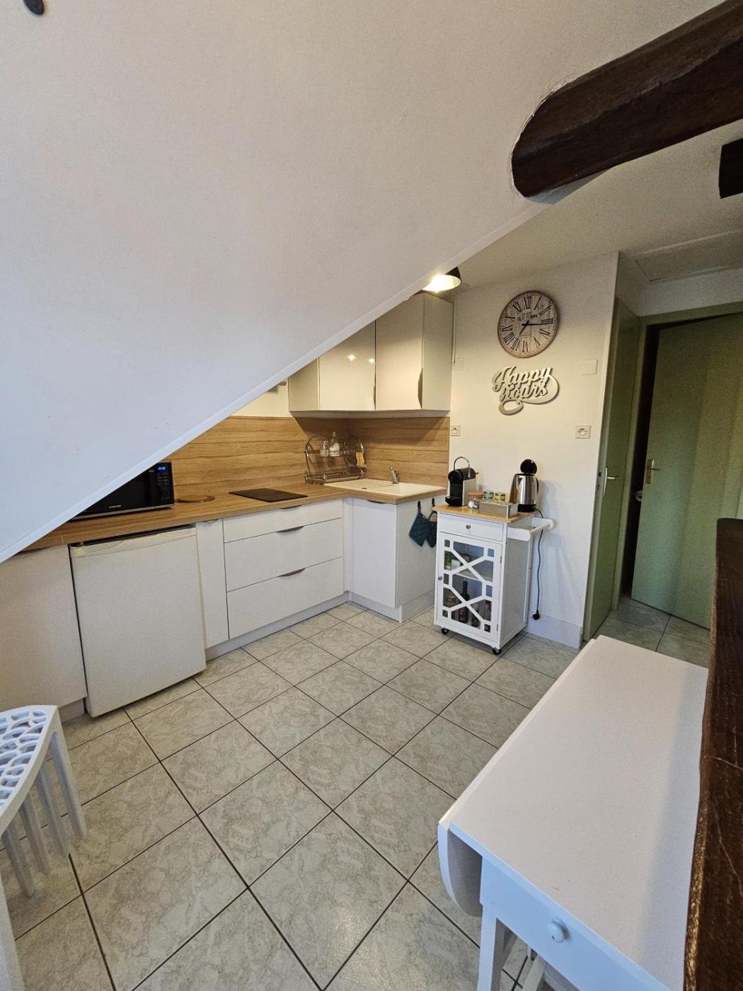 Appartement 1 Chambre. Boasting a private entrance, this apartment features 1 living room, 1 separate bedroom and 1 bathroom with a bath and a hairdryer. Guests can make meals in the kitchen that has a stovetop, a refrigerator, kitchenware and a microwave. Featuring a terrace with garden views, this apartment also features a washing machine and a flat-screen TV. The unit has 2 beds.
