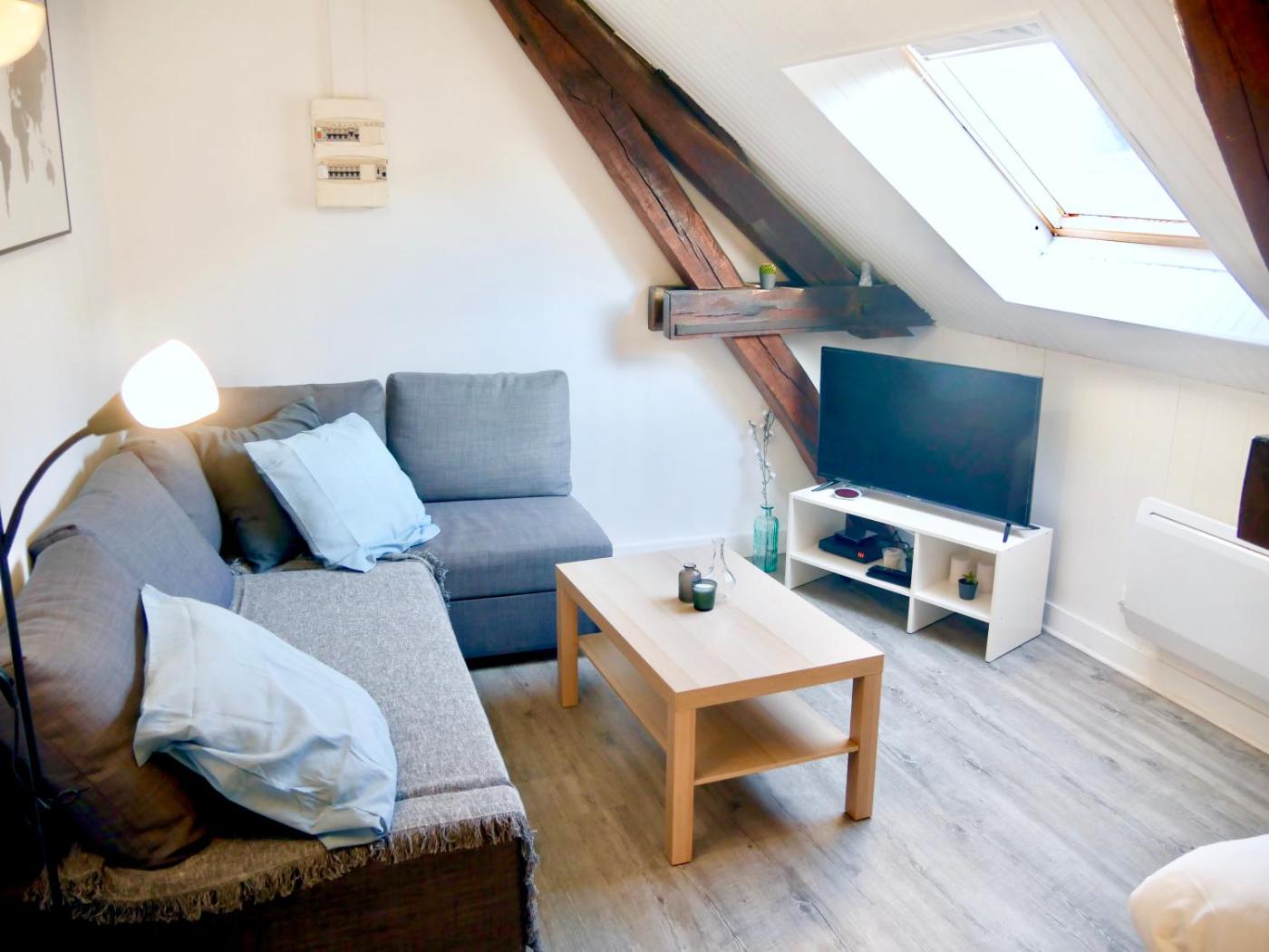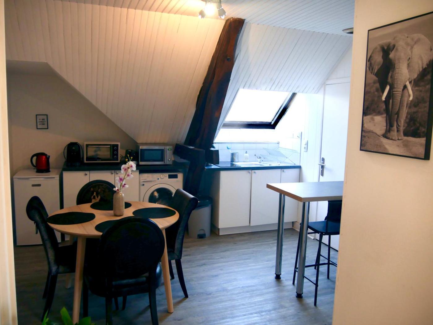 Appartement 1 Chambre. The apartments kitchen, which features a refrigerator and a microwave, is available for cooking and storing food. The apartment provides a washing machine, a coffee machine, a dining area, a wardrobe and a flat-screen TV. The unit offers 2 beds.
