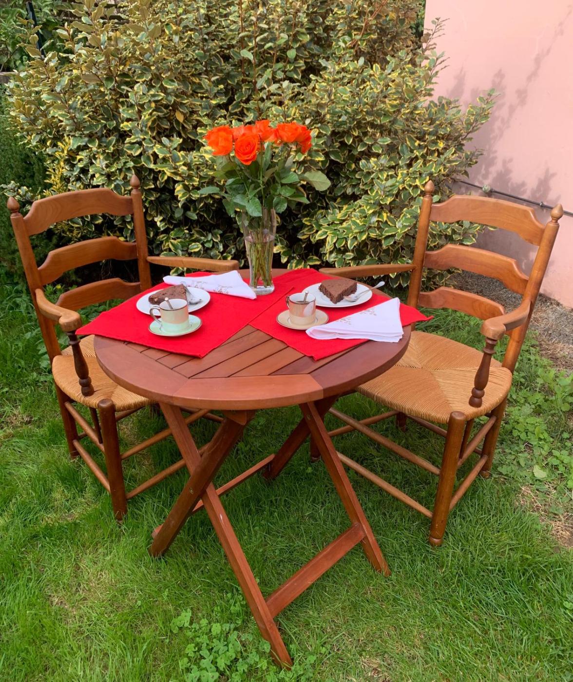 Chambre Double avec Salle de Bains Privative. Cette chambre double est spacieuse et climatisée. Elle dispose d’un plateaubouilloire, d’une salle de bains privative avec baignoire et d’une terrasse donnant sur le jardin. Ce logement comporte 1 lit.