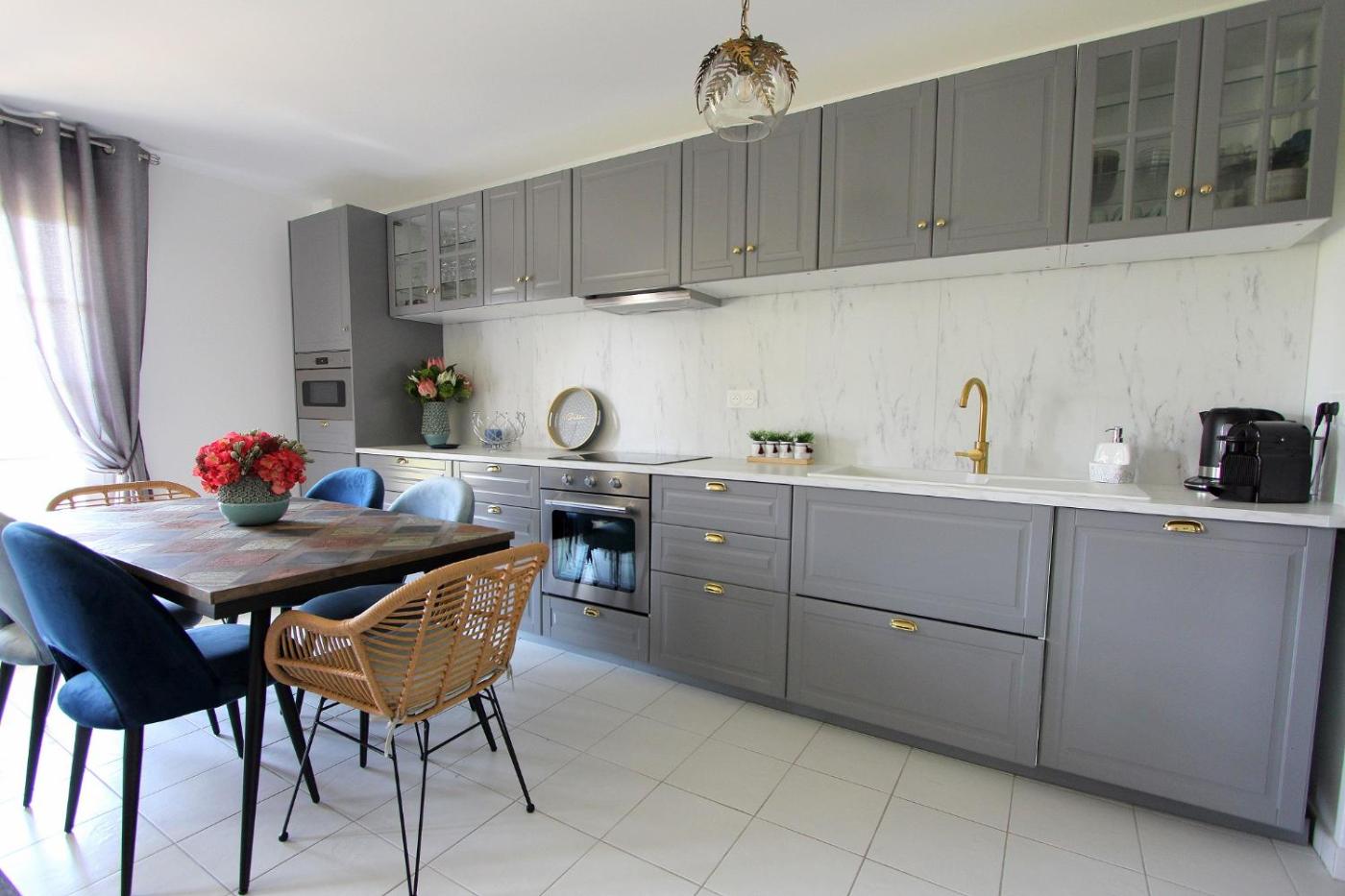 Cet appartement se compose de 3 chambres, dun salon, dune cuisine entièrement équipée avec un réfrigérateur et une machine à café, ainsi que de 2 salles de bains avec une douche et un sèche-cheveux. Cet hébergement met à votre disposition des serviettes et du linge de lit.