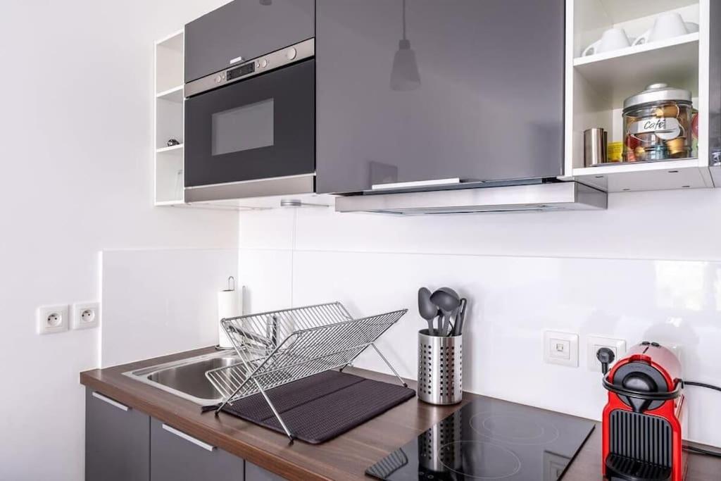 Appartement 1 Chambre. This apartment includes 1 bedroom, a kitchenette and 1 bathroom with a shower and a hairdryer. The well-fitted kitchenette has a stovetop, a refrigerator, kitchenware and a microwave. The apartment offers a coffee machine, a wardrobe, heating, as well as a flat-screen TV with streaming services. The unit has 1 bed.