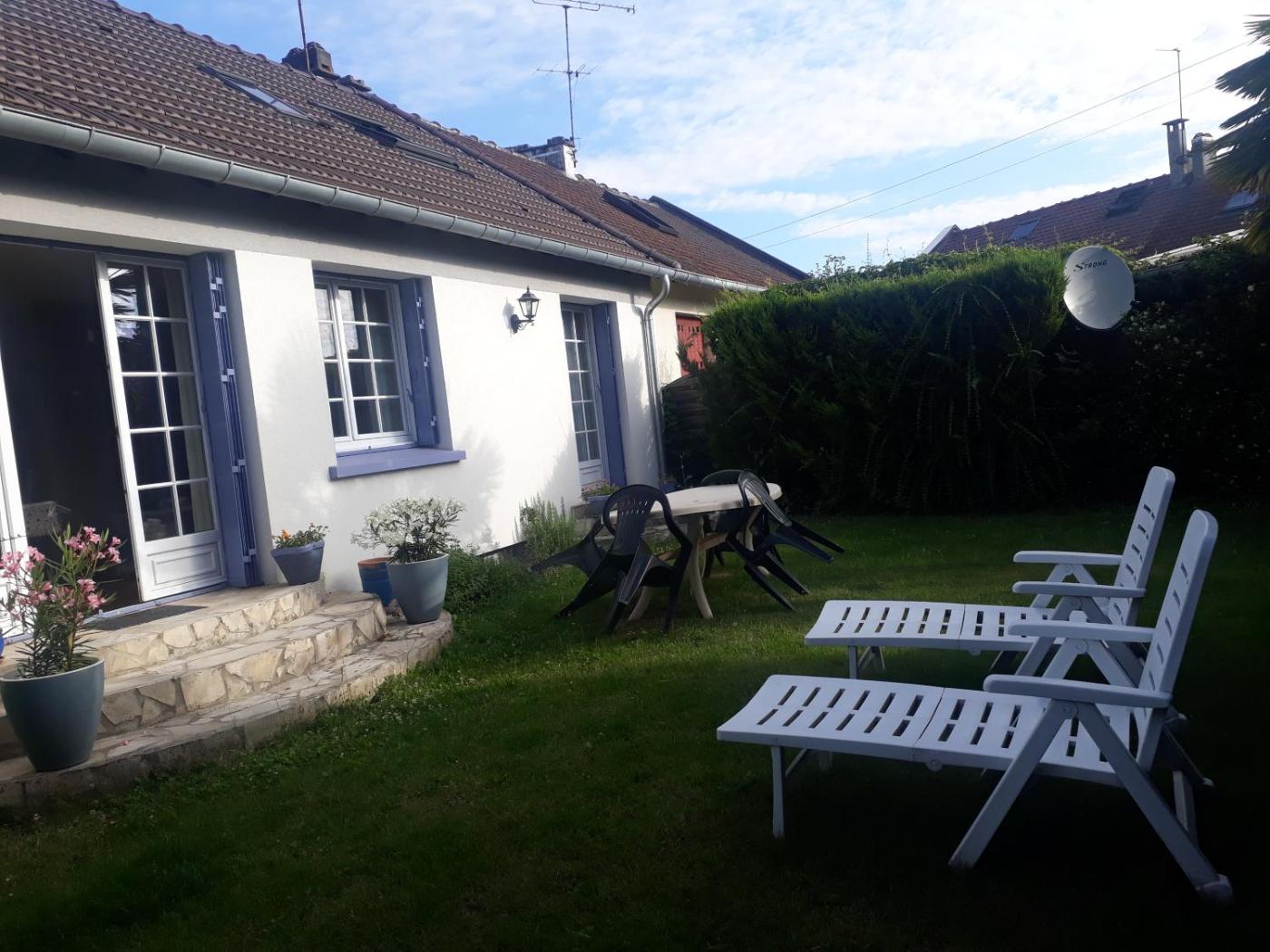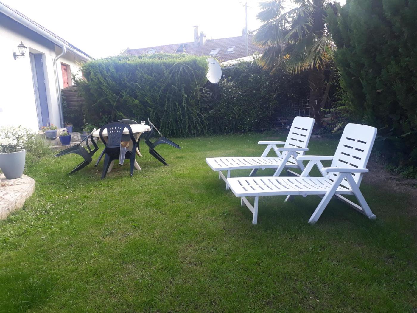 Chambre Double - Vue sur Jardin. Guests can make meals in the kitchen that is equipped with a refrigerator, kitchenware, a microwave and a tea and coffee maker. The double room provides a washing machine, soundproof walls, a terrace with garden views as well as a shared bathroom featuring a bath. The unit offers 1 bed. ;