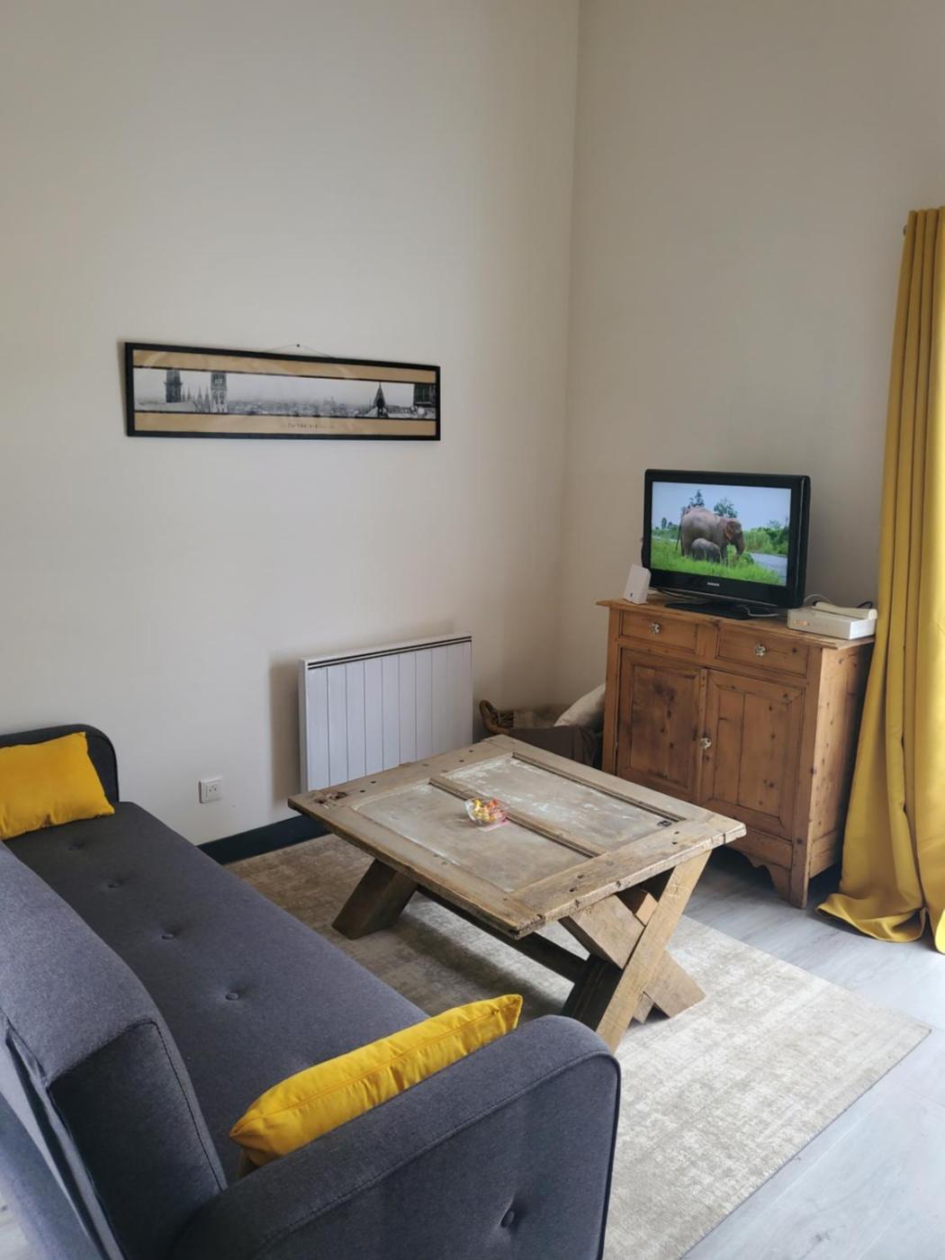 Appartement 1 Chambre. Featuring a private entrance, this apartment comprises 1 living room, 1 separate bedroom and 1 bathroom with a bath or a shower and a hairdryer. Guests will find a stovetop, a refrigerator, kitchenware and an oven in the well-equipped kitchen. The apartment also provides guests with a barbecue. Boasting a terrace with garden views, this apartment also provides soundproof walls and a flat-screen TV with cable channels. The unit offers 3 beds.