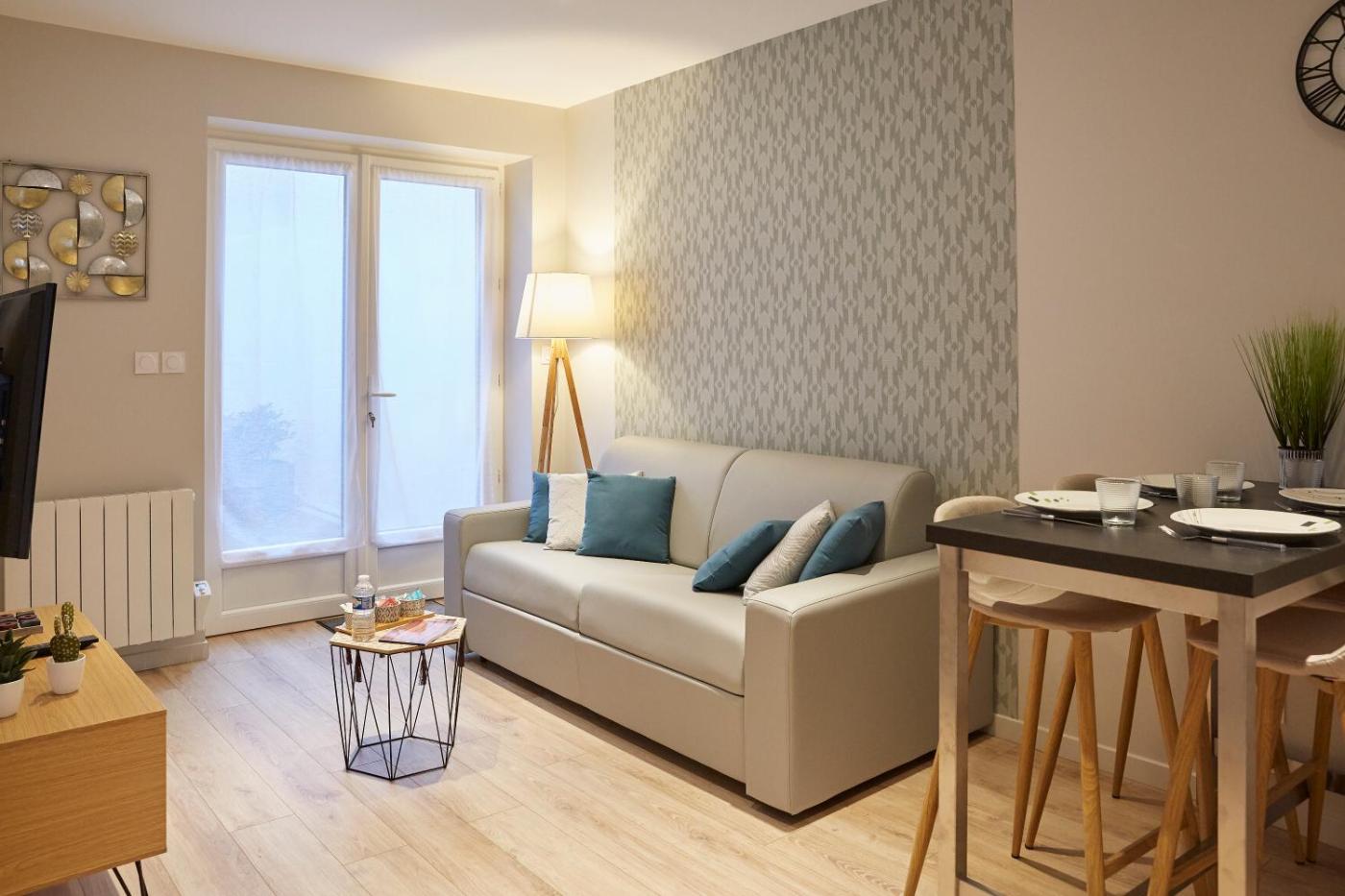 Appartement 1 Chambre. Featuring a private entrance, this apartment consists of 1 living room, 1 separate bedroom and 1 bathroom with a walk-in shower and a hairdryer. Guests can make meals in the kitchen that is equipped with a refrigerator, a dishwasher, kitchenware and an oven. Boasting a terrace with city views, this apartment also provides a washing machine and a flat-screen TV with streaming services. The unit offers 2 beds.