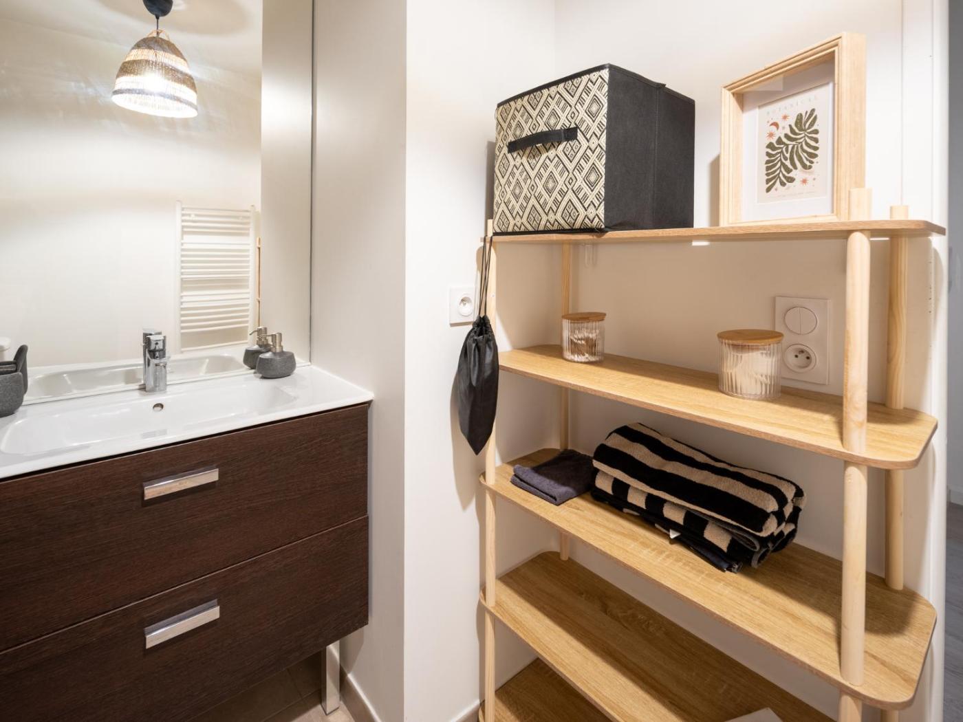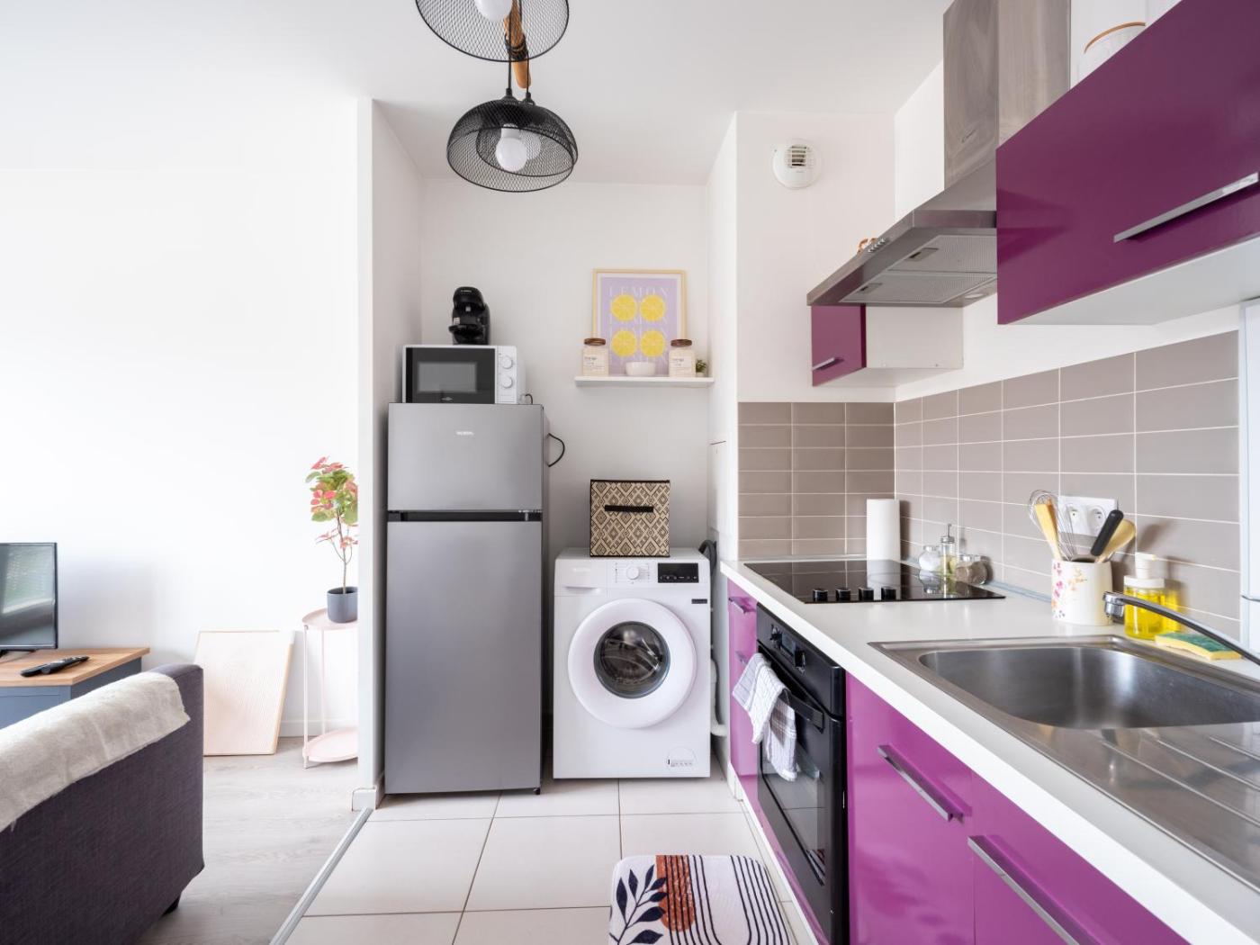 Appartement 1 Chambre. Guests can make meals in the kitchen that is equipped with a stovetop, a refrigerator, kitchenware and an oven. The apartment provides a washing machine, a private entrance, soundproof walls, a flat-screen TV with cable channels, as well as garden views. The unit offers 2 beds.