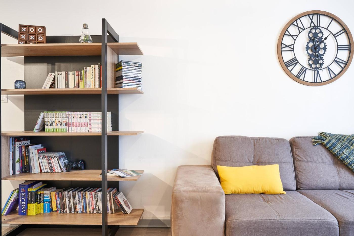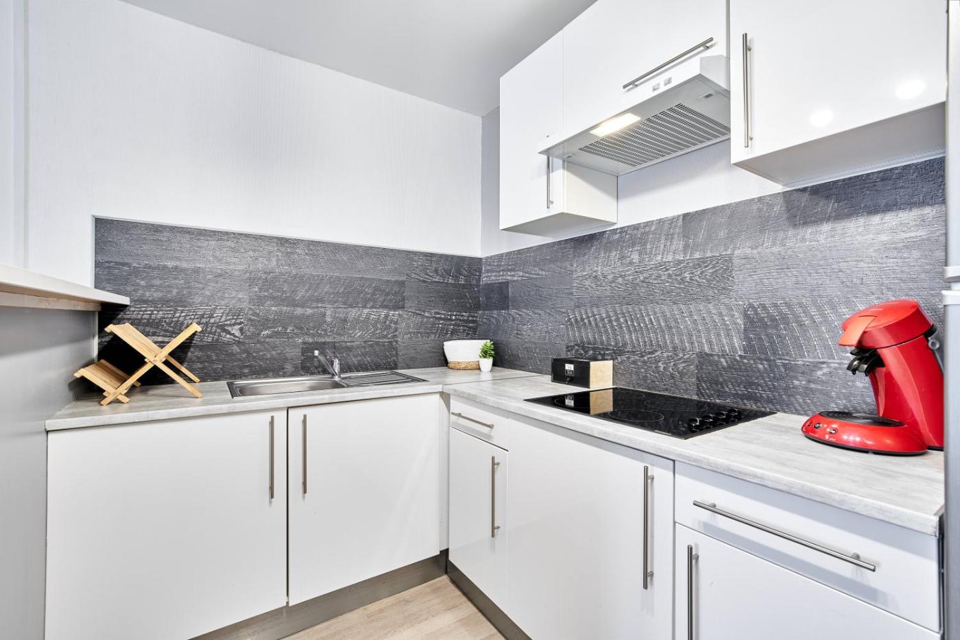 Appartement 1 Chambre. This apartment is comprised of 1 living room, 1 separate bedroom and 1 bathroom with a shower and a hairdryer. Guests can make meals in the kitchen that is fitted with a stovetop, a refrigerator, kitchenware and a microwave. The apartment offers a tea and coffee maker, a seating area, a wardrobe, a flat-screen TV with streaming services, as well as a quiet street view. The unit offers 2 beds.