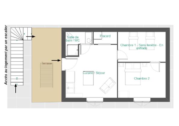 Appartement 2 Chambres. This spacious apartment is comprised of 2 bedrooms, kitchenette, a terrace and 1 bathroom with a shower. The well-equipped kitchenette features a stovetop, a refrigerator, kitchenware and a microwave. The air-conditioned apartment offers a flat-screen TV, a washing machine, a coffee machine, a dining area as well as garden views. The unit offers 3 beds.