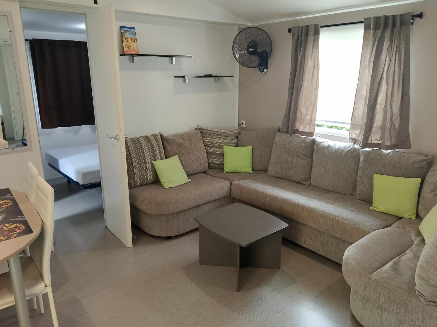 Mobile Home. This mobile home consists of 1 living room, 1 separate bedroom and 2 bathrooms with a shower. The fully equipped kitchenette features a stovetop, a refrigerator, a dishwasher and kitchenware. Featuring a terrace with garden views, this mobile home also provides a tea and coffee maker and a flat-screen TV. The unit offers 6 beds.