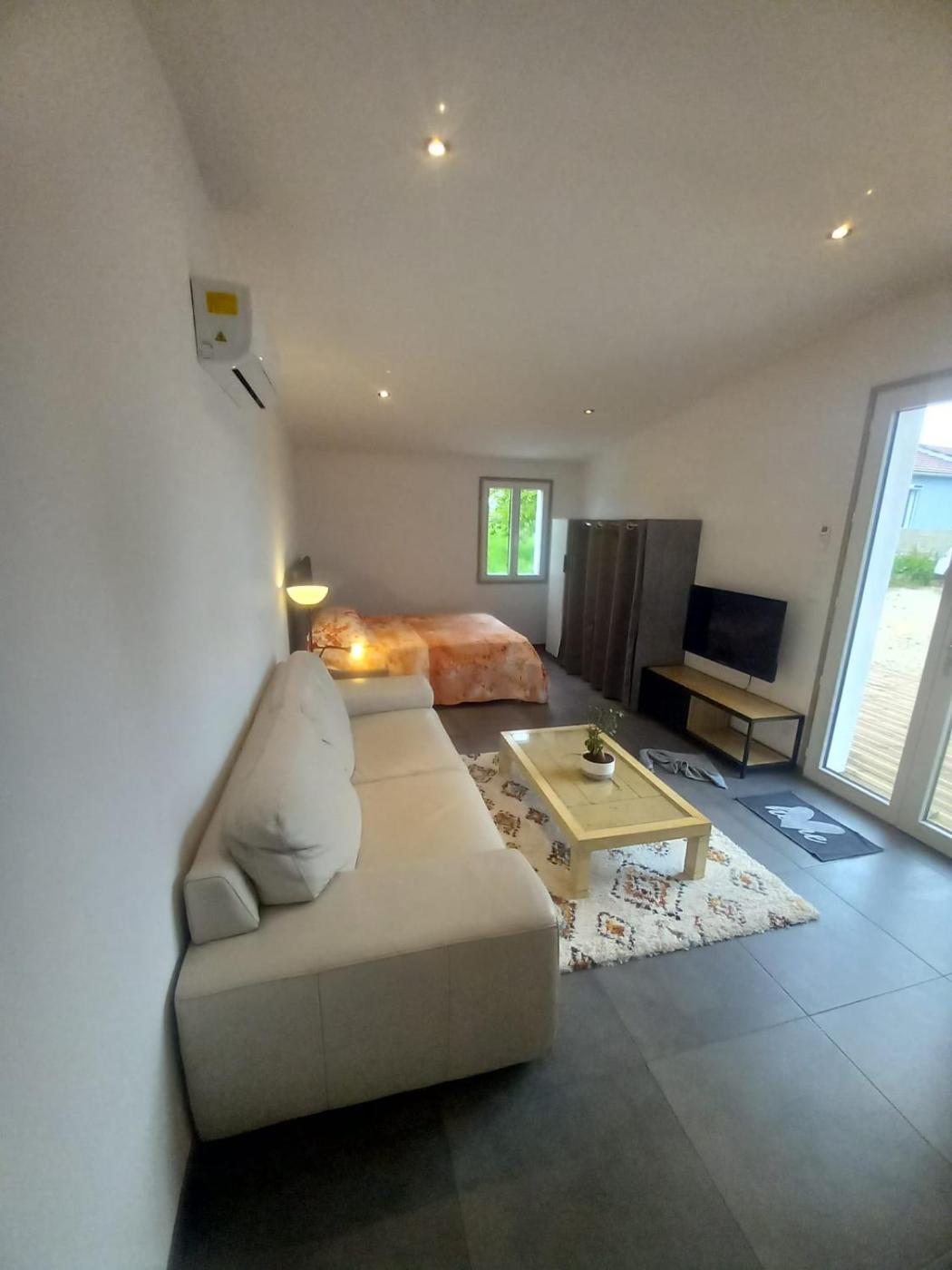 Appartement 1 Chambre. Boasting a private entrance, this air-conditioned apartment includes 1 bedroom and 1 bathroom with a walk-in shower. In the kitchen, guests will find a stovetop, a refrigerator, kitchenware and a microwave. Featuring a terrace with garden views, this apartment also offers a coffee machine and a flat-screen TV with satellite channels. The unit has 1 bed.