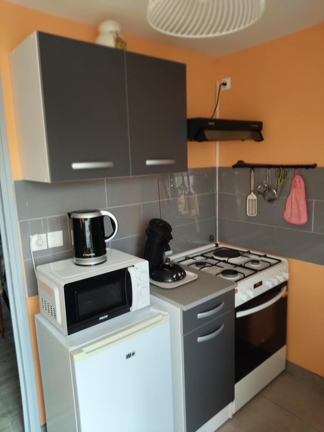 Appartement 1 Chambre. Featuring a private entrance, this apartment comprises 1 living room, 1 separate bedroom and 1 bathroom with a walk-in shower and a hairdryer. Guests will find a stovetop, a refrigerator, kitchenware and an oven in the well-fitted kitchen. The apartment also provides guests with a barbecue. Boasting a terrace with garden views, this apartment also provides a washing machine and a flat-screen TV with cable channels. The unit offers 2 beds.